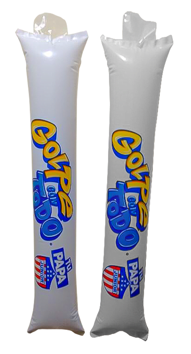 Los golpeadores tubulares son sellados e inflados de tal manera que pueden utilizarse en la promoción de eventos y actividades donde el público puede interactuar y participar con ellos de manera segura, higienica y práctica. Pueden ser marcados permitiendo el impulso y recordación de su marca.